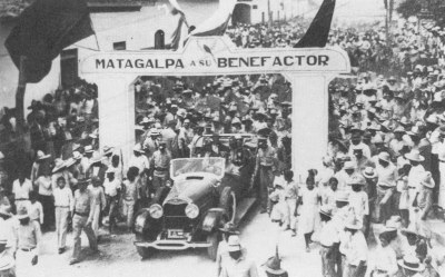PRIMEROS VEHÍCULOS MOTORIZADOS EN MATAGALPA: 1936 SOMOZA EN MANIFESTACIÓN POLÍTICA EN EL PARQUE CENTRAL
